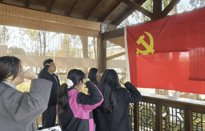 活动最后,在冯叶雯同志的带领下,全体与会党员面向鲜红的党旗,庄严举起右拳,重温入党誓词。铿锵有力的誓言在百草园中回荡,表达了中医药学院研究生党员对党的无限忠诚与为中医药科研事业奋斗终身的坚定决心。