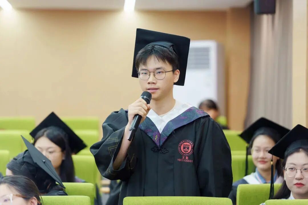 7位毕业生作为代表,现场向母校报告自己的就业去向和未来志向,纷纷表示将不负韶华,将青春理想融入继承发展中医药的火热实践中,以更加坚定的信念和扎实的知识书写为中国式现代化挺膺担当的青春华章。