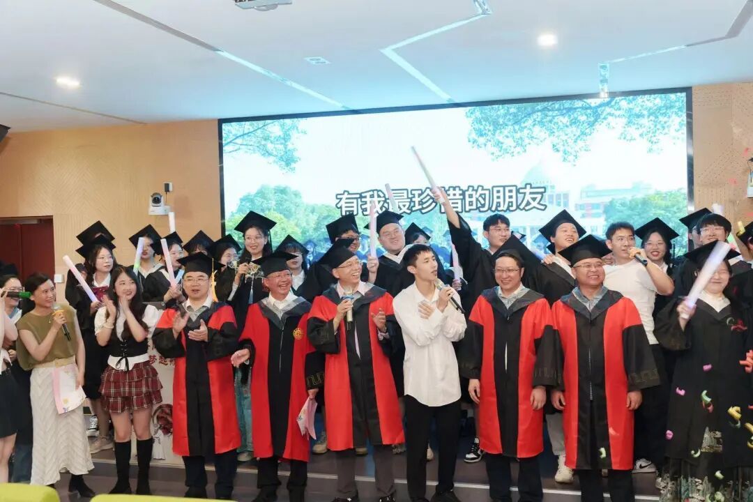 “开始的开始,我们都是孩子,最后的最后,渴望变成天使”,2024届中医学专业本科生精心改编的歌曲《温医大的日子》将毕业典礼推向了高潮,毕业生们伴随着旋律,纷纷举起手中的荧光棒,走向舞台,并邀请老师们同台歌唱,师生们在歌声中一起追忆,一起庆祝,一起展望未来!