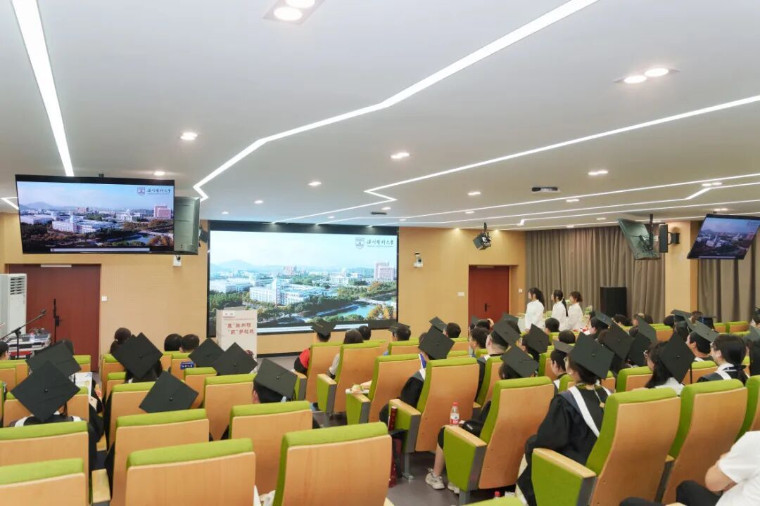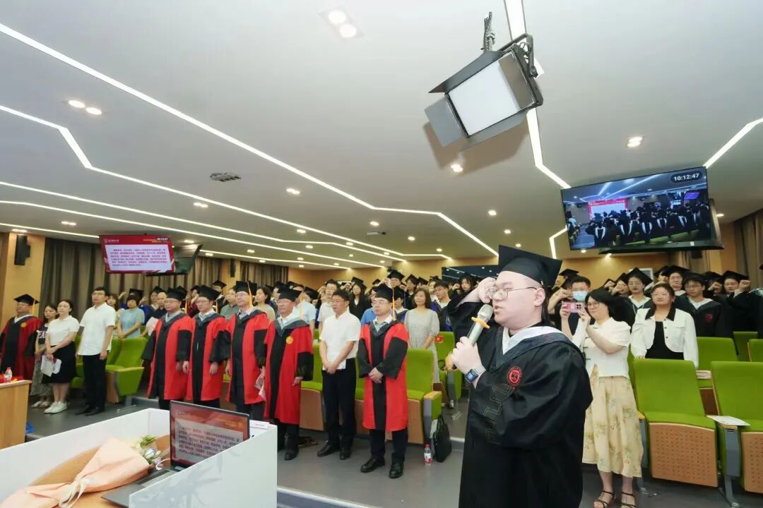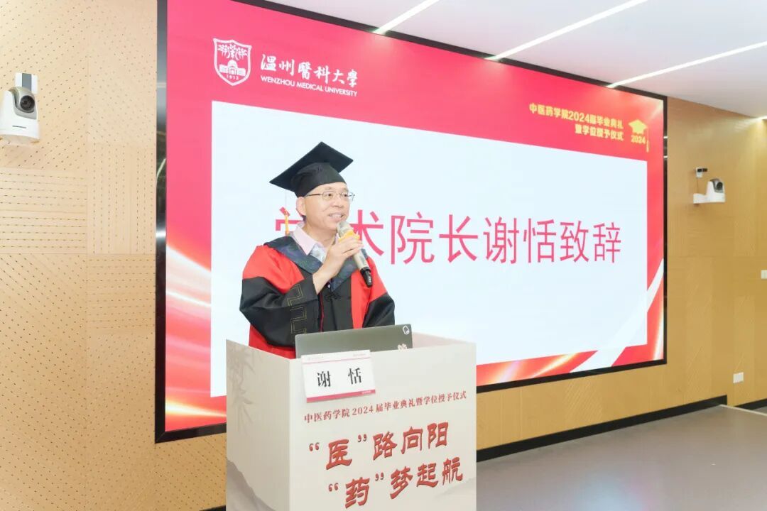 学术院长谢恬教授为毕业典礼致辞,期许毕业生当以爱国心,承载时代重托,用青春书写奉献,成为新时代的领航者,续写奋斗的华章;当以笃学心,弘扬岐黄精神,不忘初心勇往直前,学以致用,在实践中展现才华,在奋斗中乘风破浪,扬帆远航;当以赤子情,铸就理想信念,做到心中有光、脚下有力,用简单和纯粹守护赤子之心,在人生的赛道上奋力奔跑。