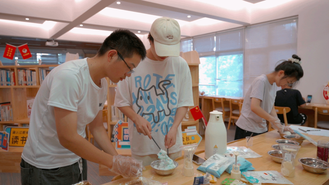 受邀而来的同学纷纷投入手工制作之中,欢声笑语同浓郁的香味交叠在一起。冰皮如雪,馅料如玉,模具轻扣,一块块精致的月饼如小巧的艺术品般诞生,每一份都揉进了大家的美好祝福与祈愿。