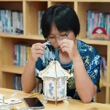 而在另一角灯笼的制作现场,更似一所奇幻的创意工坊——彩纸飞舞,木影明叠,岐黄学子们用灵巧的双手编织出一个个绚丽多彩的梦,点亮中秋,诉说美好。