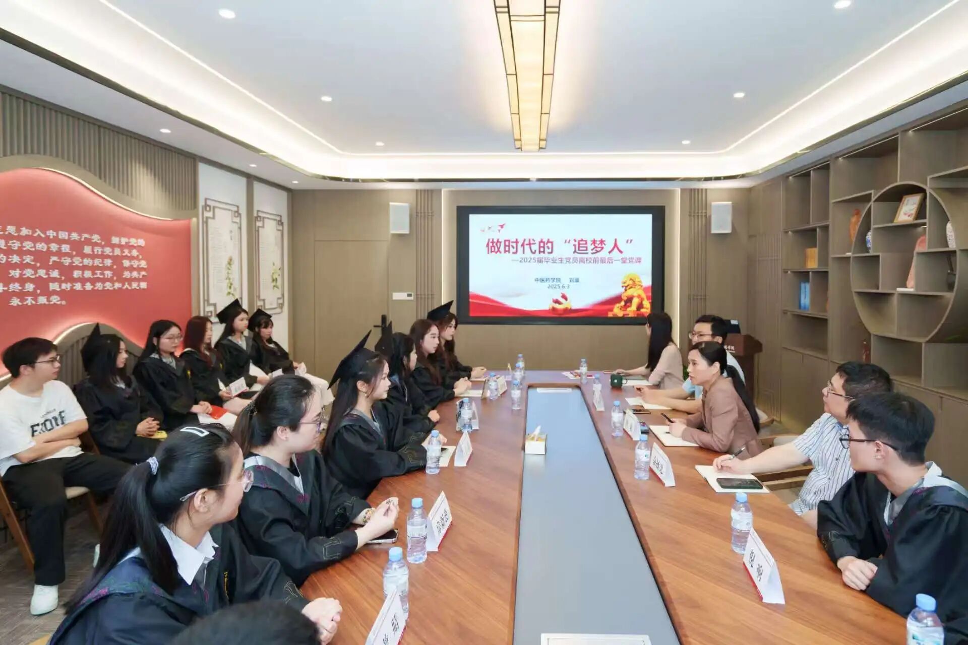 为强化毕业生党员的党性修养和身份意识,引导大家在人生新的征程中牢记党员身份、明确责任担当。6月3日,中医药学院在7A306-3会议室开展“书记有约”暨毕业生党员“最后一次党课”专题活动,学院党委书记、副院长刘瑜,副院长、党委委员袁拯忠,副书记、纪委书记梁栋,辅导员付欢欢,2025届全体中药学专业毕业生党员参加活动。