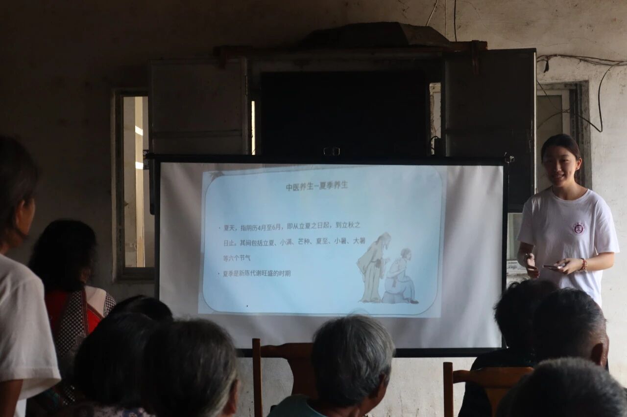 考虑到听众以老年人为主,实践团成员摒弃专业术语,从精神、起居、饮食、运动、药物、防病等多个维度,结合生活场景生动科普夏季养生知识。“夏天暑湿重,别对着空调猛吹,一定要护好肚子,不然容易生病。”通俗的叮嘱让村民纷纷点头,有村民感慨:“以前夏天空调开最低、风扇直吹,以后不这么干了。”