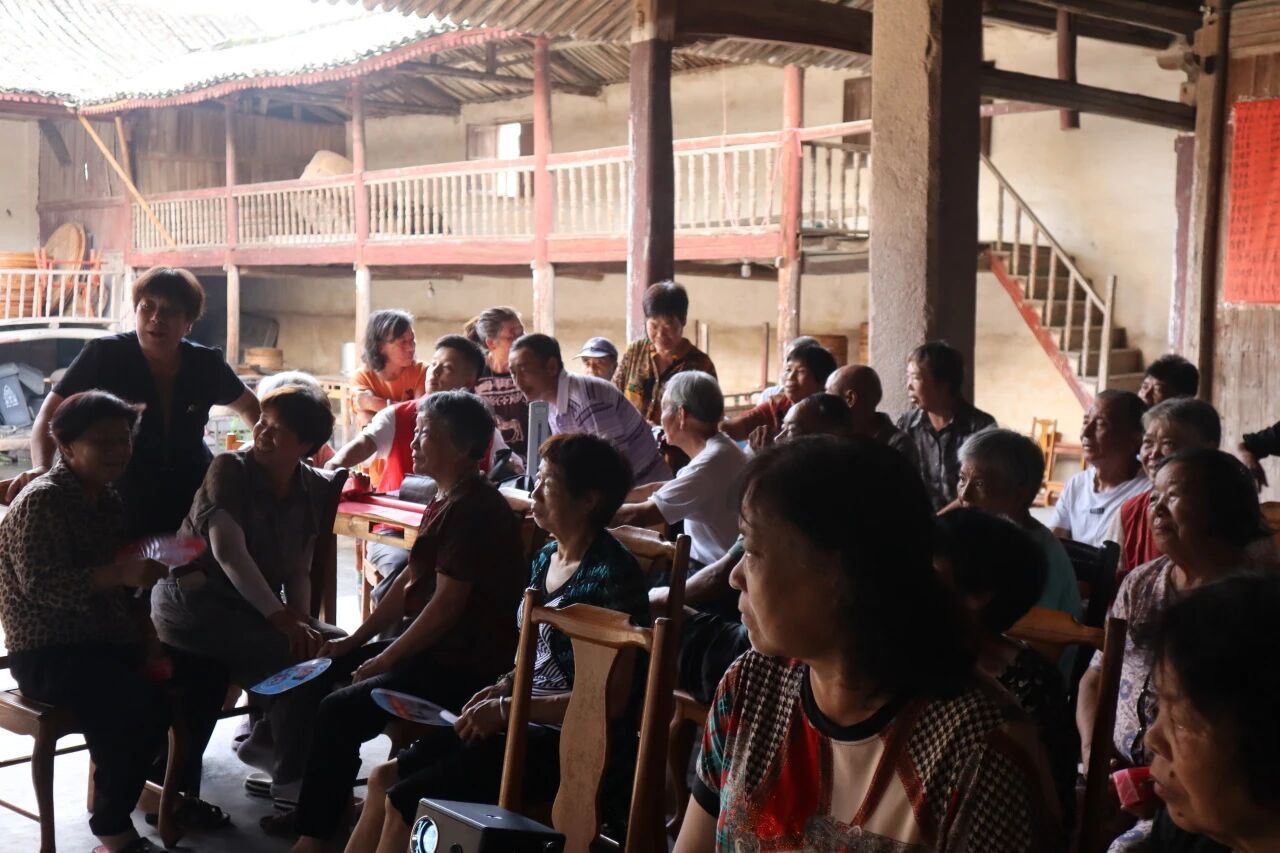 为帮助老年村民理解,宣讲配备直观插图;针对部分老人听不懂普通话的情况,村干部全程用方言翻译“疰夏”“汗斑”等术语,并协助村民追问细节,确保养生知识准确传递。