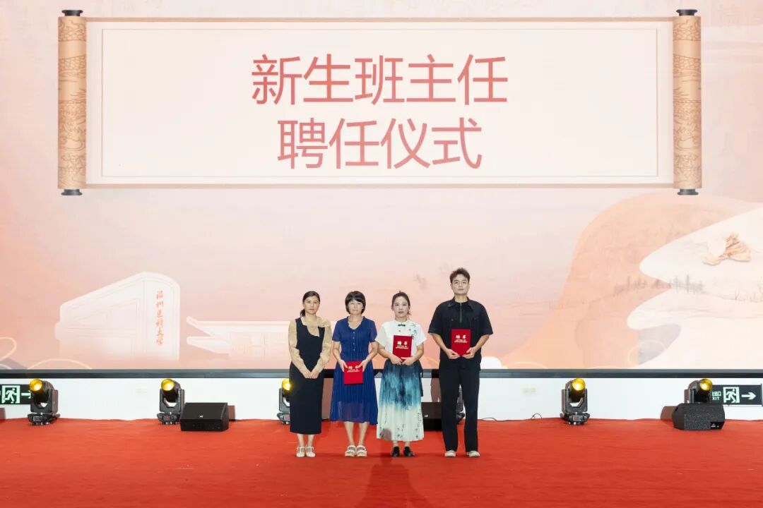 学院在开学礼上举行了2025级新生班主任聘任仪式。刘瑜书记为三位新生班主任颁发聘书。现场还安排了学生干部聘任仪式,袁拯忠副院长为学院新一届团委、学生会、研究生会及青囊志愿者服务社的学生干部代表颁发了聘书。