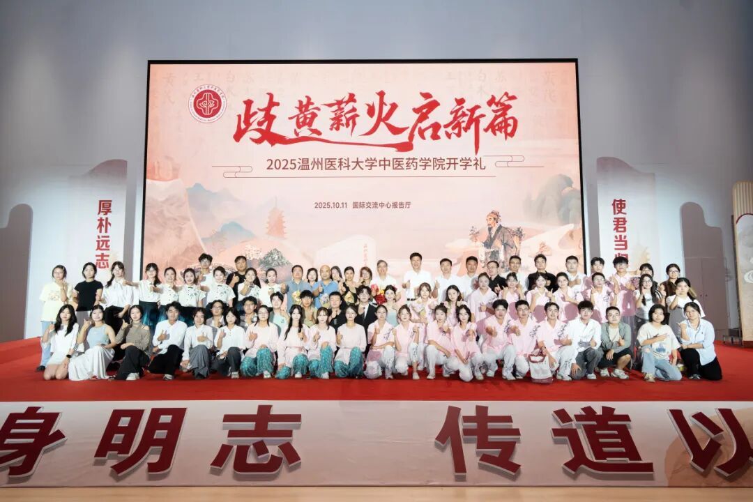 温州医科大学党委委员、副校长沈贤,中国医学科学院学部委员、国家岐黄学者、中医药学院学术院长谢恬,全国名老中医药专家学术经验继承指导老师、浙江省名中医、中医药学院首席学术顾问程锦国,温州市中西医结合医院党委书记朱文宗,温州市中医院院长孙云,东阳市中医院院长王超,永嘉县中医医院副院长王军,温州市健康产业和中医药促进会会长谷献旦,温州海鹤药业有限公司总经理高强,温州海鹤药业有限公司副总经理兼董事长助理柳汪鑫,永嘉县枫林镇中心卫生院院长林忠亦,温州杏和医疗健康管理有限公司、杏和南塘门诊部副总经理、温州医科大学中医药学院校友会秘书长潘军,全国名老中医药专家传承工作室专家金定国、马大正、程泾,浙江省国医名师传承工作室专家胡臻,浙江省名中医工作室专家蒋松鹤、叶人、陈志伟、谢作钢,全国老药工传承工作室专家朱雪梅,温州医科大学中医药学院党委书记刘瑜、副院长袁拯忠、副书记梁栋,中医药研究院执行院长姜程曦,附属第一医院针推理疗科主任医师谢文霞,附属第二医院主任中医师王建中、肛肠外科主任医师郑晨果,中医药学院各行政科室和系(教研室)负责人、全体教师、2025级新生、全体本科生和研究生参加。
